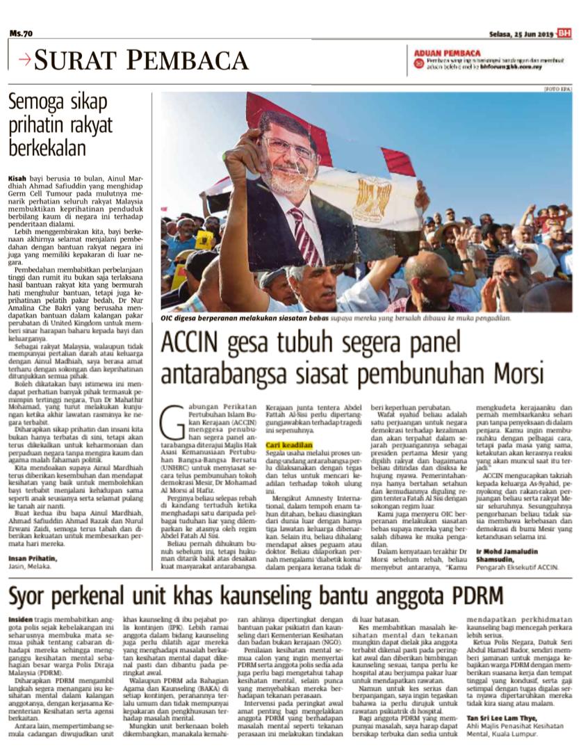 ACCIN Gesa Tubuh Segera Panel Antarabangsa Siasat Pembunuhan Morsi