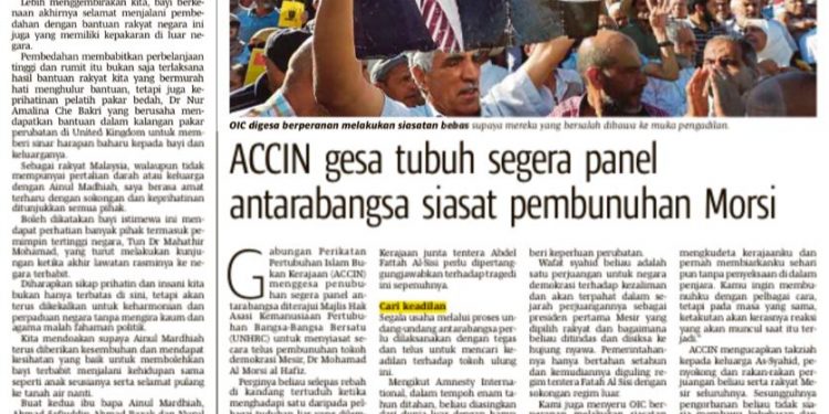 ACCIN Gesa Tubuh Segera Panel Antarabangsa Siasat Pembunuhan Morsi