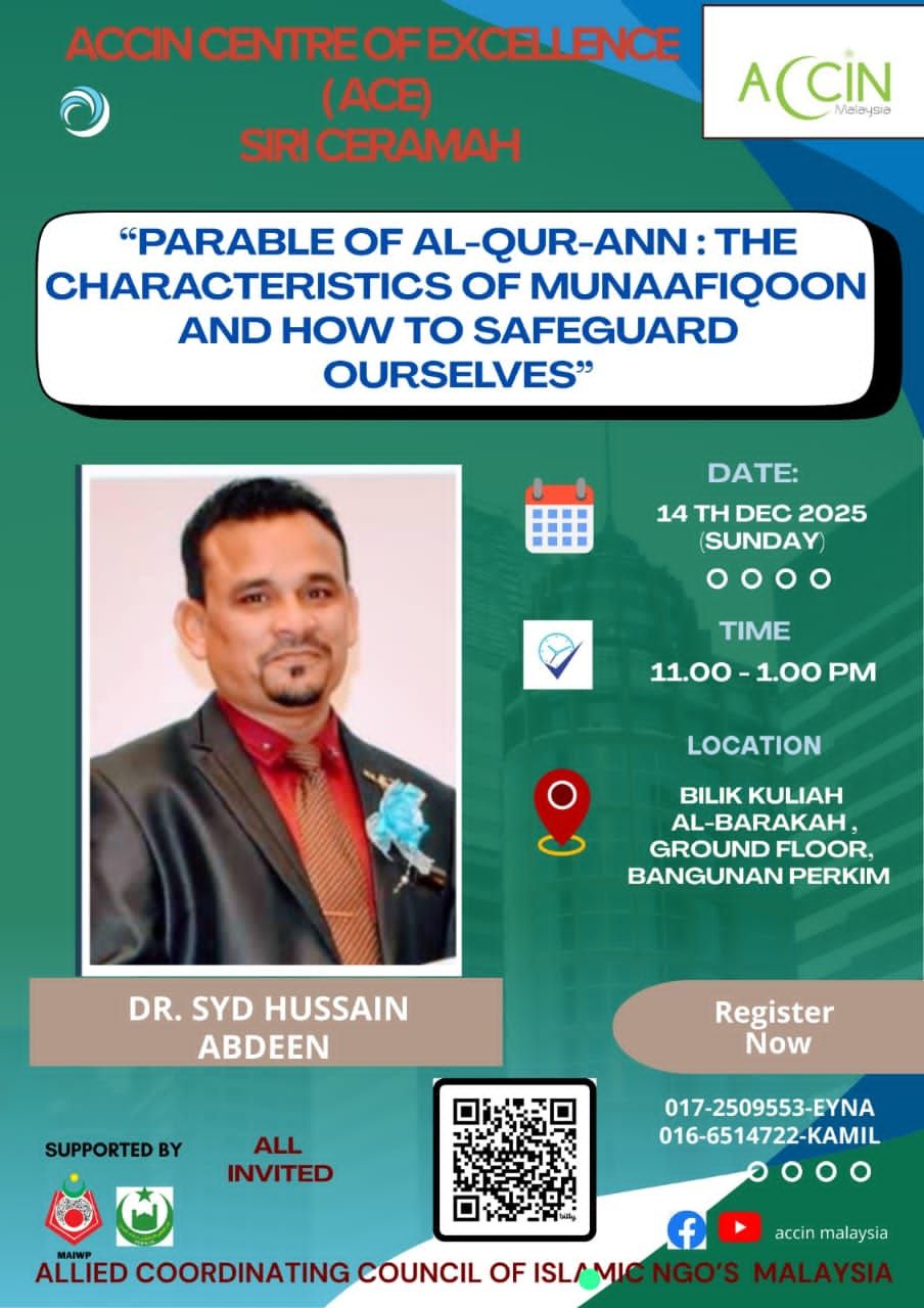 “PARABLE OF AL-QUR-ANN : THE CHARACTERISTICS OF MUNAAFIQOON AND HOW TO SAFEGUARD OURSELVES”